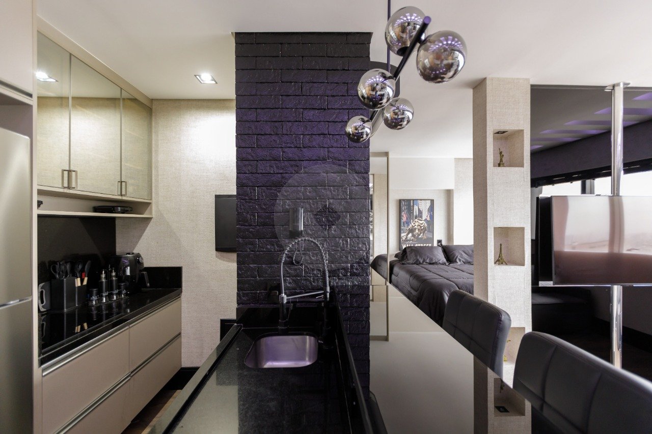 ?? Studio com 40 m2 privativos, com sala, cozinha, banheiro muito bem distribuídos.