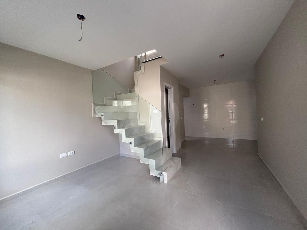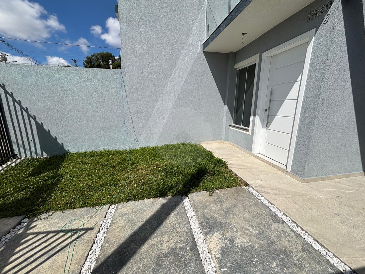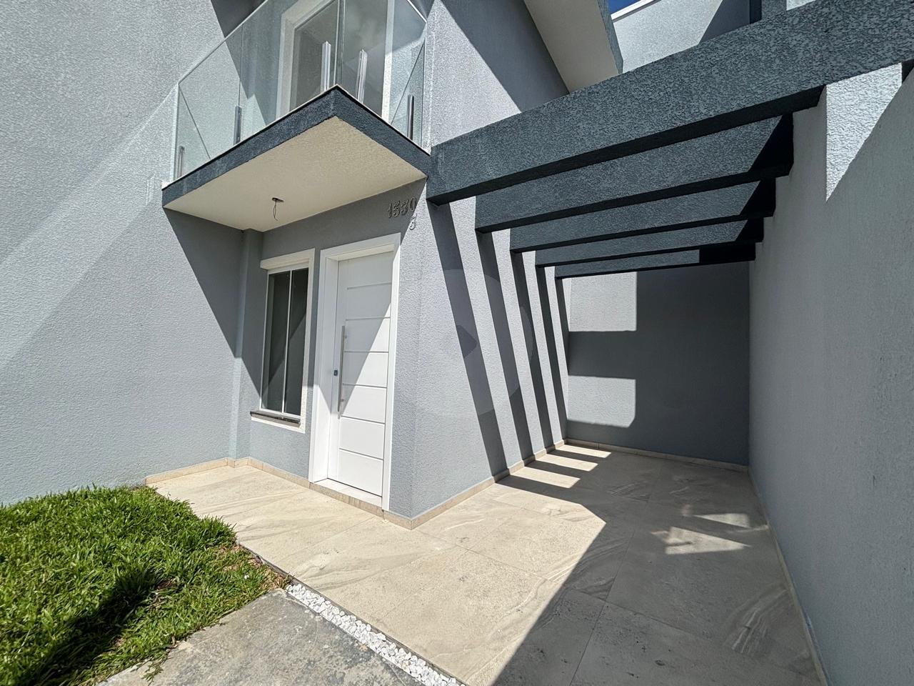 Sobrado de frente para a rua, no bairro Fazendinha. Imóvel novo, pronto para morar. Excelente padrão de acabamento com: piso porcelanato, corrimões em vidro, piso laminado, tampo em granito etc. - Sala para 2 ambientes com piso porcelanato; - Lavabo; - 2 dormitórios com sacada e piso laminado;- - 2 banheiros, tampo em granito; - 2 vagas para veículo (1 coberta e outra descoberta); - Lavanderia; - Espaço nos fundos com churrasqueira;