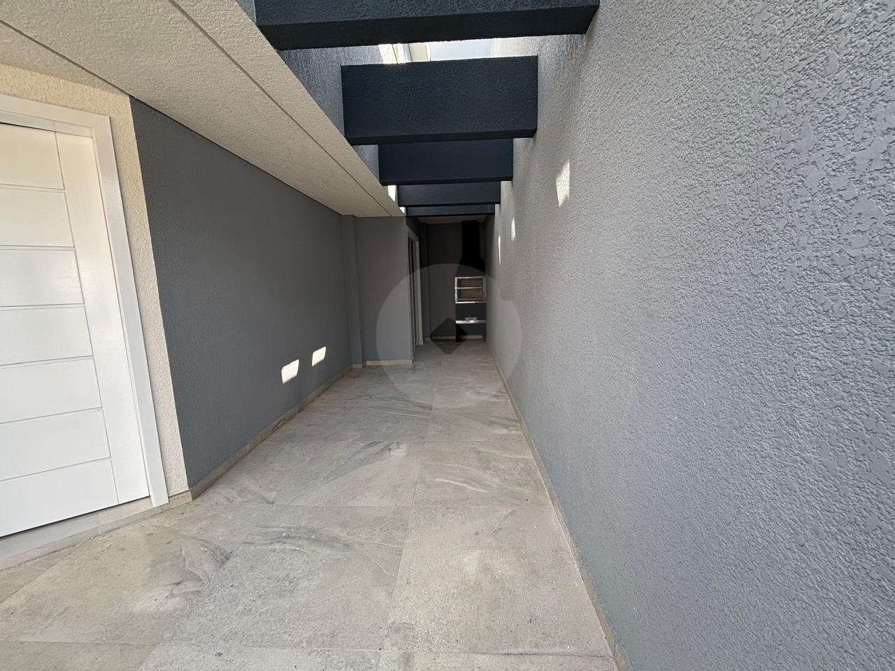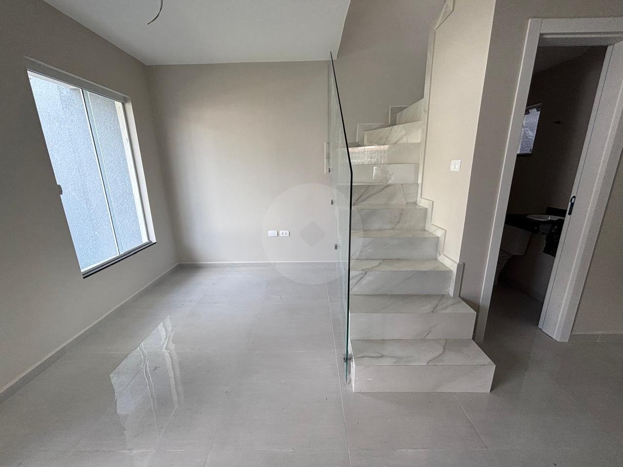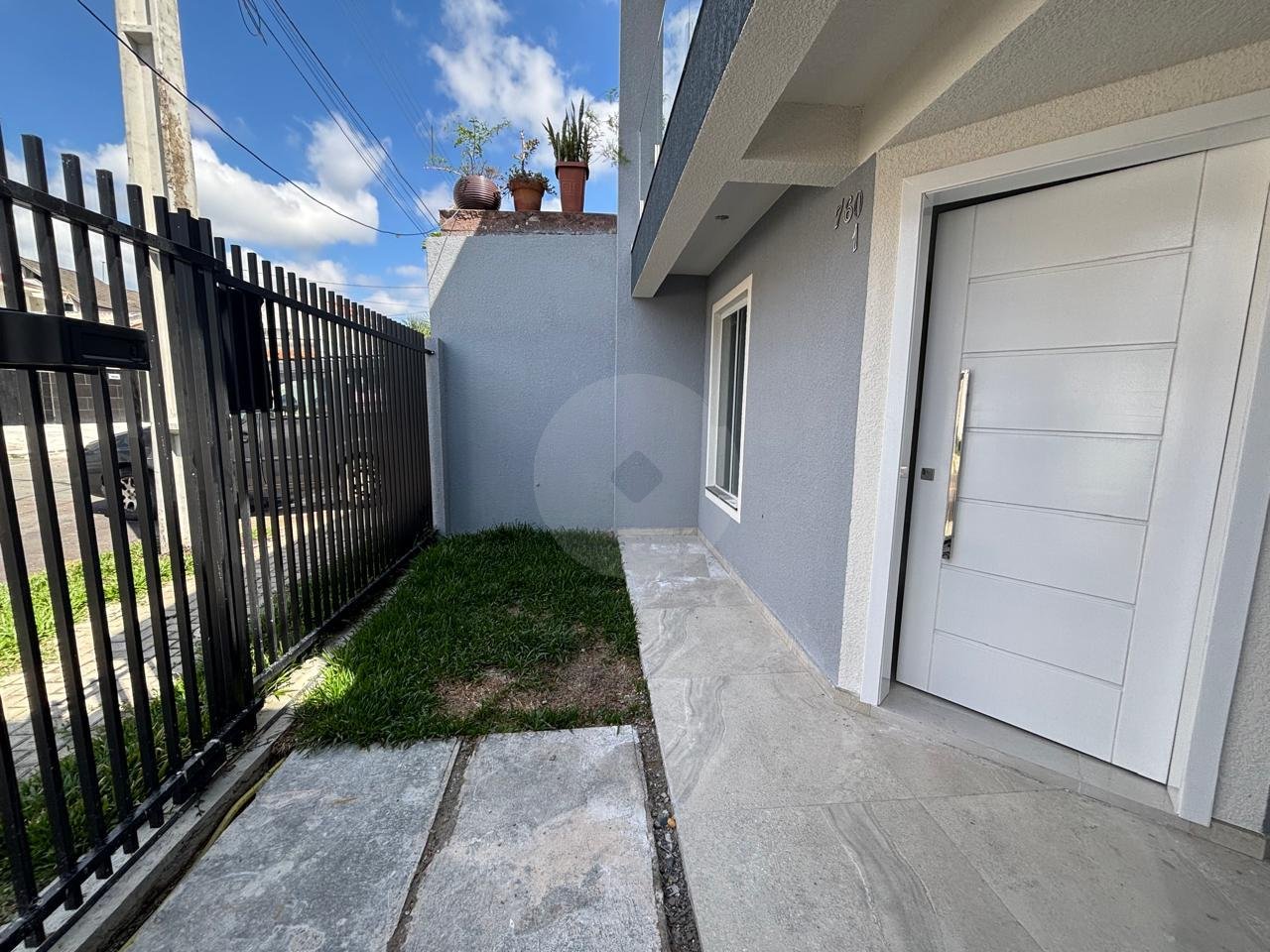 Sobrado de frente para a rua, no bairro Fazendinha. Imóvel novo, pronto para morar. Excelente padrão de acabamento com: piso porcelanato, corrimões em vidro, piso laminado, tampo em granito etc. - Sala para 2 ambientes com piso porcelanato; - Lavabo; - 2 dormitórios com sacada e piso laminado;- - 2 banheiros, tampo em granito; - 2 vagas para veículo (1 coberta e outra descoberta); - Lavanderia; - Espaço nos fundos com churrasqueira;
