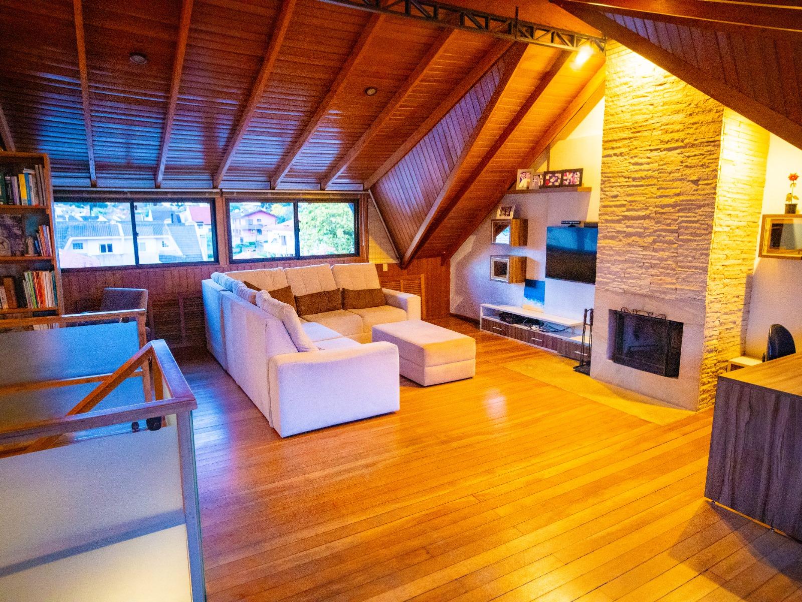 - 182m² de área construída || 116m² averbados. - 3 quartos, sendo 1 suíte com armários planejados. - Área social integrada, com sala de estar e jantar, lavabo, cozinha e espaço gourmet - Garagem coberta, com acesso direto à casa e espaço para 2 carros - Escritório planejado, para trabalho e estudo - Ático de 50m², com lareira, pé-direito alto (3,5m) e versátil para home theater, brinquedoteca ou fitness